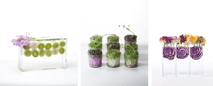 Ho scoperto questo giovane artista del vegetale, il giapponese Hiroyuki Oka, grazie a Cendrine di Jardin Divers. La sua moderna interpretazione, il suo approccio creativo e originale, a tratti ironico, ai fiori e agli ortaggi, mi ha subito affascinato e conquistato. Le sue composizioni, le cui foto sono raccolte anche in una monografia, molto raccontano dell'arte del fiore e del vivere in Giappone, e sono un abile e perfetto gioco di equilibrio tra i vari elementi, forme e colori.